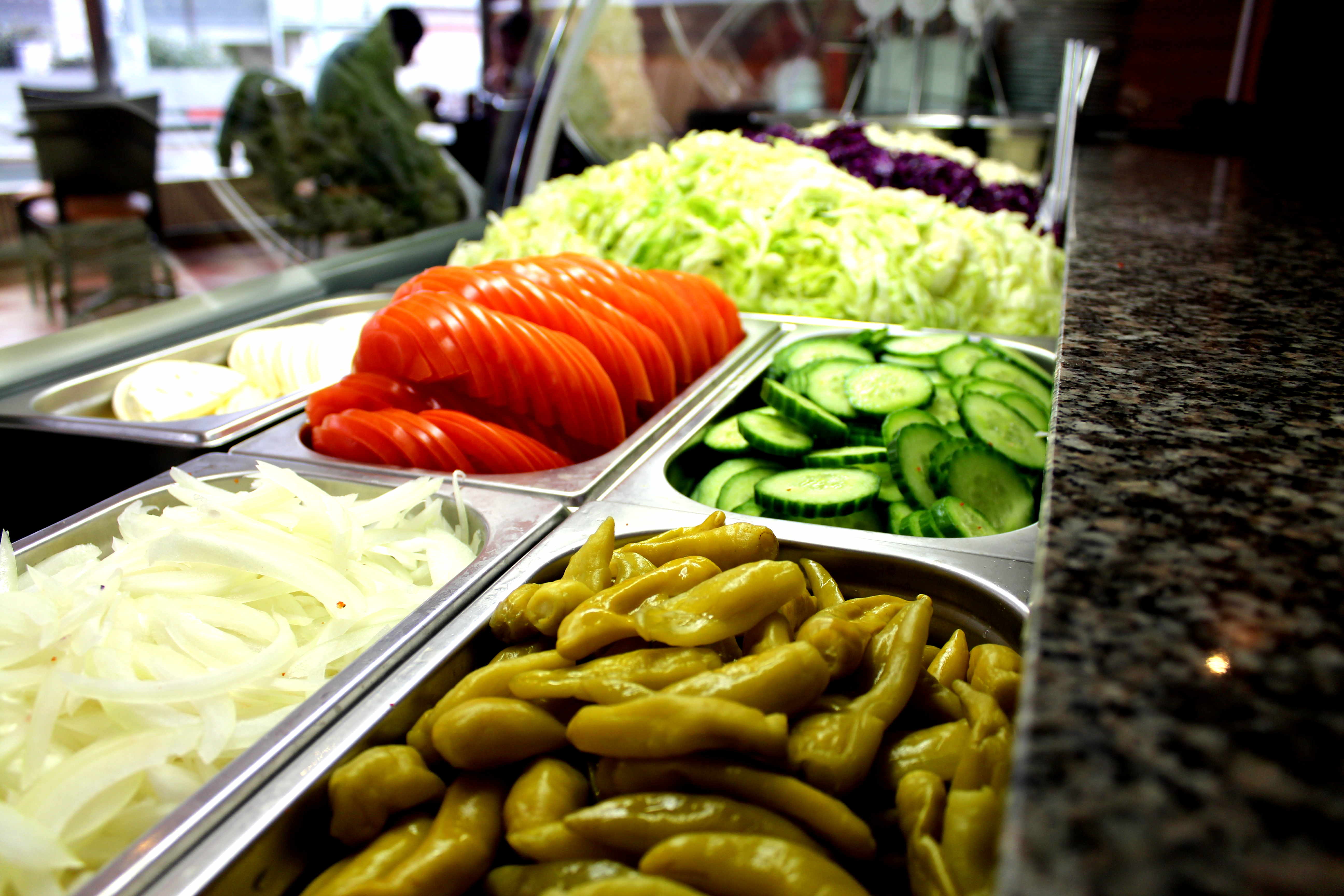 UNS. Bei uns haben Sie die Wahl zwischen zartem Kalbsfleisch oder saftigem Hähnchenfleisch, um Ihre Geschmacksknospen zu verwöhnen. Doch das ist noch nicht alles! Unsere unwiderstehlichen Saucen, darunter die erfrischende Joghurt-Kräuter-Sauce, die aromatische Knoblauch-Sauce und die cremige Cocktailsauce, verleihen Ihrem Döner eine einzigartige Note. Begleiten Sie Ihren Döner mit einer Vielfalt an frischen Salaten, die nicht nur für eine ansprechende Optik sorgen, sondern auch eine Fülle von Geschmack und Nährstoffen bieten. Das knackige Rotkraut verleiht Ihrem Döner eine angenehme Knusprigkeit, während das saftige Weißkraut eine sanfte Textur hinzufügt. Der erfrischende Eisbergsalat bringt eine leichte und knusprige Komponente ein, während die saftigen Tomaten eine fruchtige Süße beisteuern. Die knackigen Gurken sorgen für eine angenehme Frische, während die pikanten Peperoni einen aufregenden Kick verleihen. Die würzigen Zwiebeln runden das Ganze mit ihrem intensiven Aroma ab. Wir sind stolz darauf, Ihnen eine gesunde Alternative anzubieten, die reich an Geschmack und Qualität ist. Jeder Bissen unseres Döners ist eine wahre Geschmacksexplosion - eine perfekte Kombination aus zartem Fleisch, frischen Zutaten und einer Vielfalt an Aromen, die Ihre Geschmacksknospen verzaubern. Besuchen Sie uns und lassen Sie sich von unserem verlockenden Döner verwöhnen. Wir garantieren Ihnen ein Geschmackserlebnis, das Sie immer wieder erleben möchten. Gesunde Mahlzeiten waren noch nie so lecker!